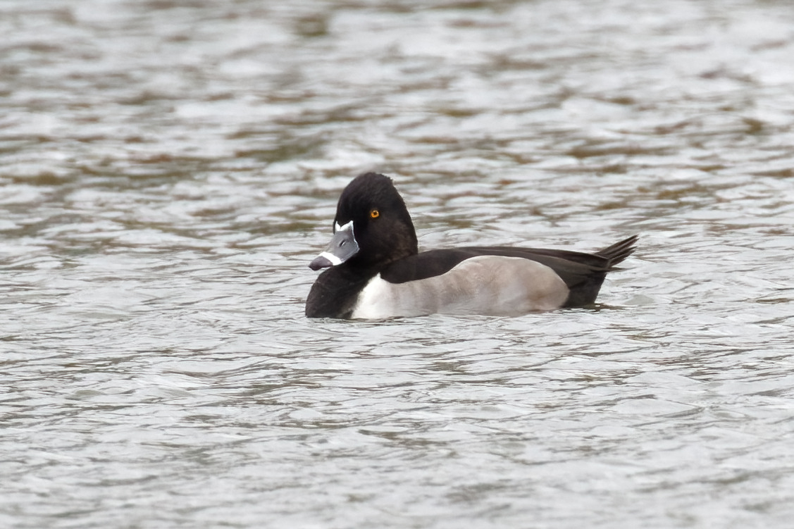 Mytchett GPs: drake Ring-necked Duck at Water’s Edge south pit (BirdGuides).